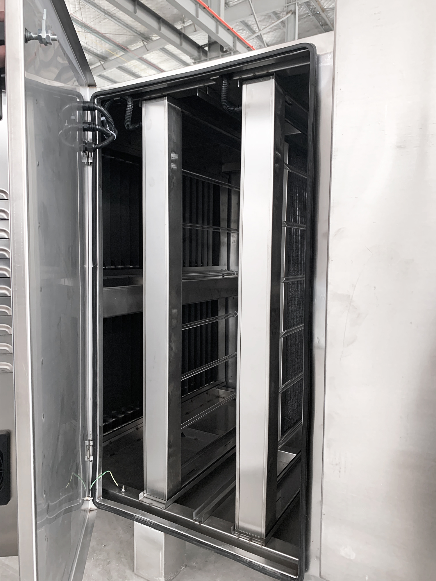 8、進(jìn)風(fēng)口有漆霧簡單預(yù)處理除塵棉,出風(fēng)口有活性炭棉,紫外燈管之間有加光催化棉,都以’S’型走風(fēng),阻力小。