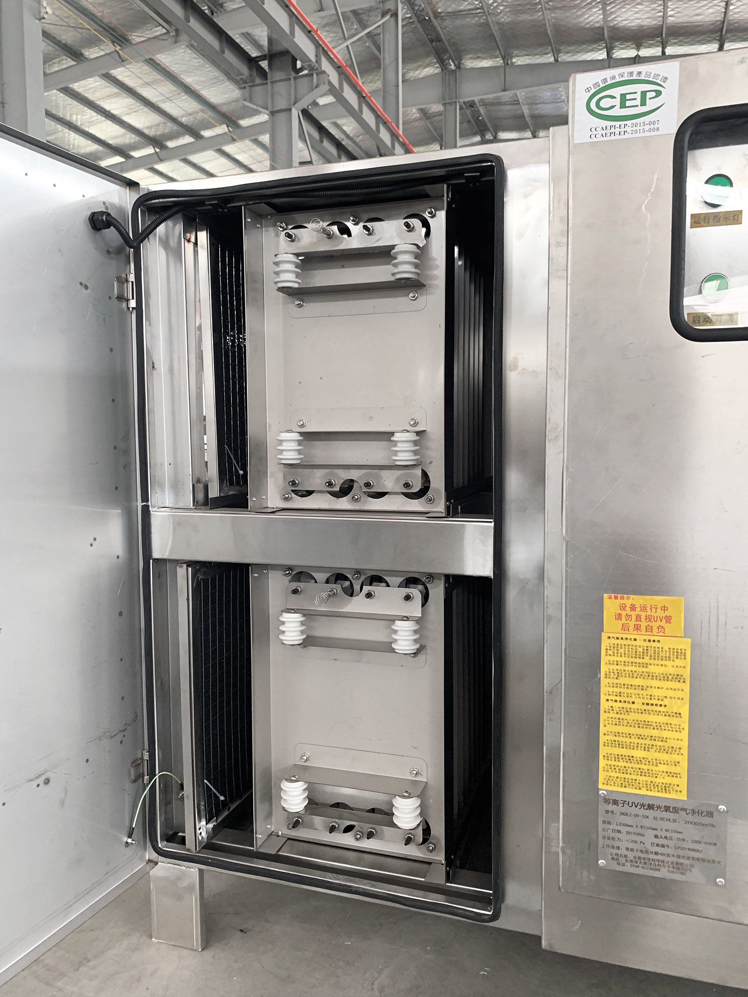 4、運(yùn)行成本低:本設(shè)備無任何機(jī)械動作,無噪音,無需專人管理和日常維護(hù),只需作定期檢查,本設(shè)備能耗低,(每處理1000立方米/小時,僅耗電約0.1度電能),設(shè)備風(fēng)阻極低<30pa,可節(jié)約大量排風(fēng)動力能耗。